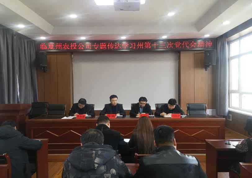 11月30日上午,臨夏州農投公司組織召開全體干部職工會議,專題傳達學習州第十三次黨代會精神,安排部署公司學習貫徹落實工作。會議由州第十三次黨代會黨代表、董事長程鵬同志主持,公司班子成員以及全體職工參加。